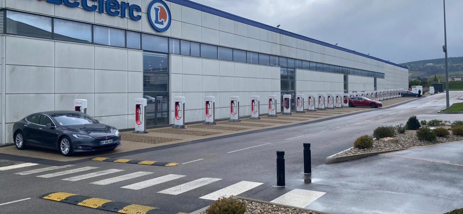 Tesla has opened its “longest Supercharger station in the world” through a growing partnership with a French supermarket company. There are larger, bigger Supercharger stations in the world, but apparently, there are none longer.